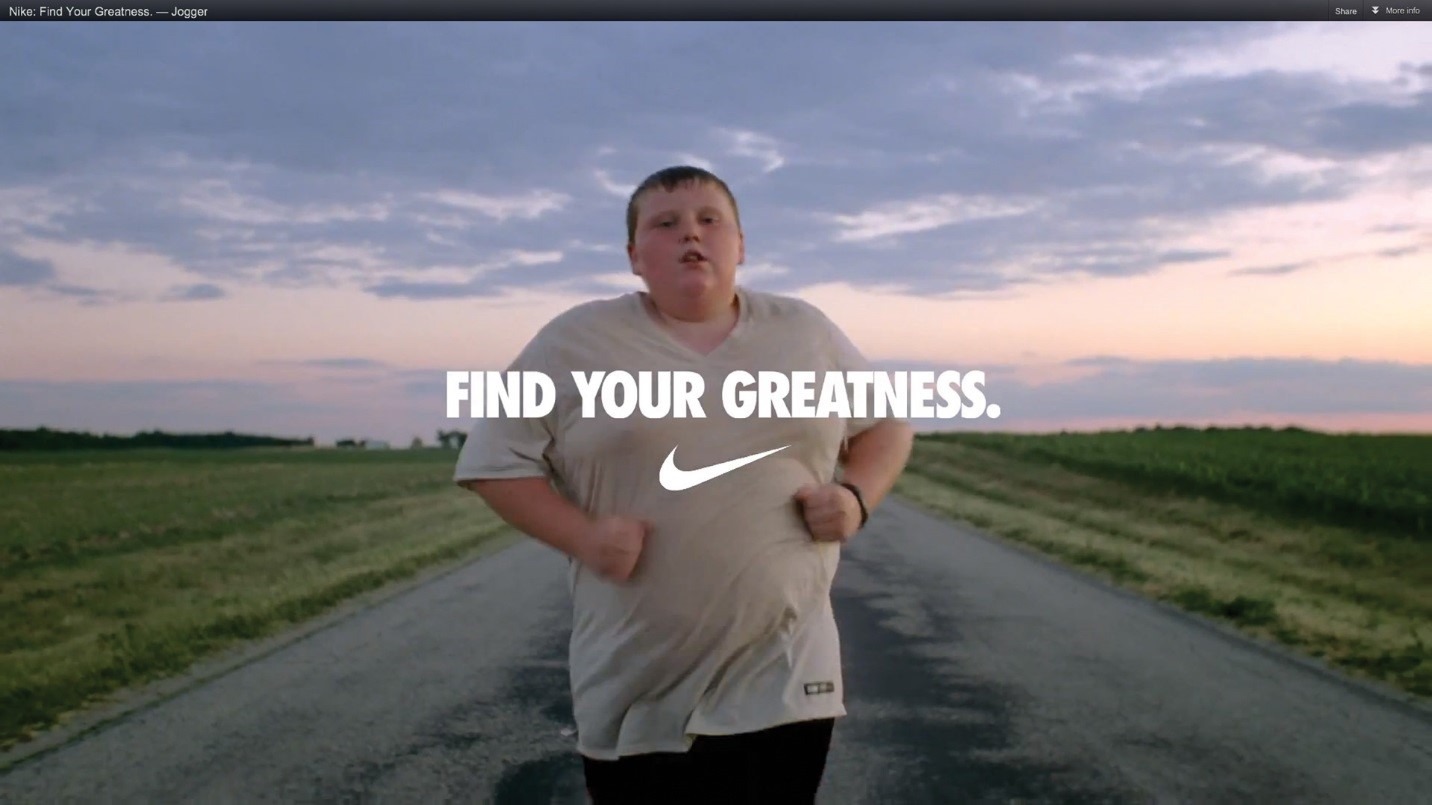A história que a Nike repete ao longo dos anos é uma só: todos podem conquistar a grandeza, despertando o atleta interior, você e eu somos os heróis das nossas histórias, a Nike é apenas alguém que nos ajuda a despertar esse herói.