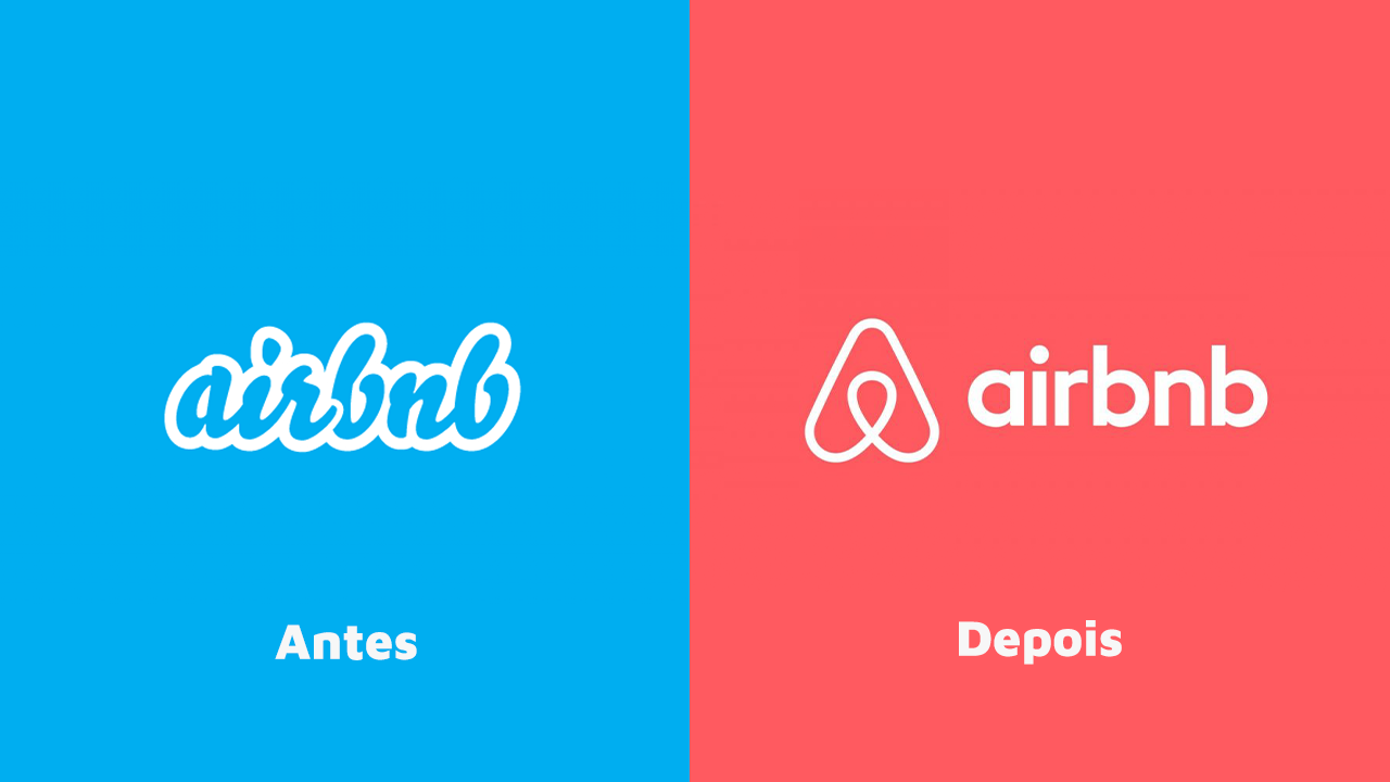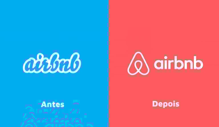 Antes e depois do logotipo do Airbnb.