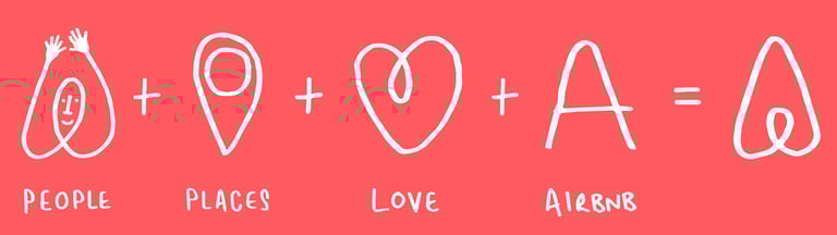 Conceito do logotipo: pessoas, lugares, amor e letra A, simbolizando o Airbnb.